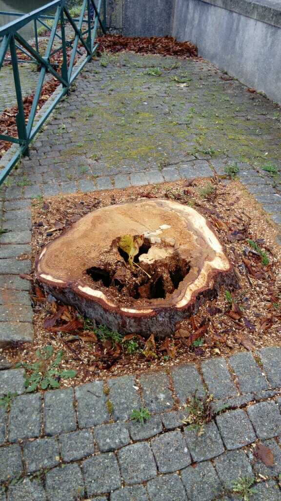 Suite à une expertise menée début octobre, le marronnier situé en bord de canal, à proximité du pont Henri IV, a été identifié comme présentant un dépérissement très avancé.