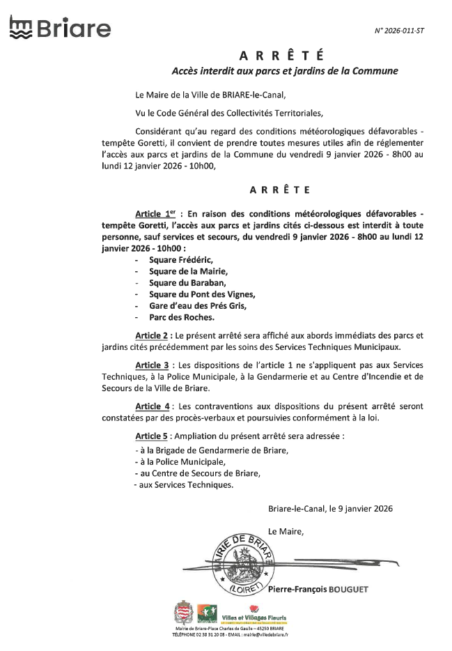 En raison des conditions météorologiques défavorables liées à la tempête Goretti, un arrêté municipal a été pris afin de garantir la sécurité de tous.
