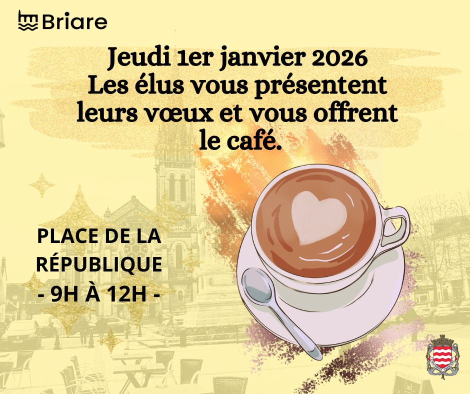 Les élus vous présentent leurs vœux et vous offrent le café, place de la république : mercredi 1er janvier de 9h à 12h.