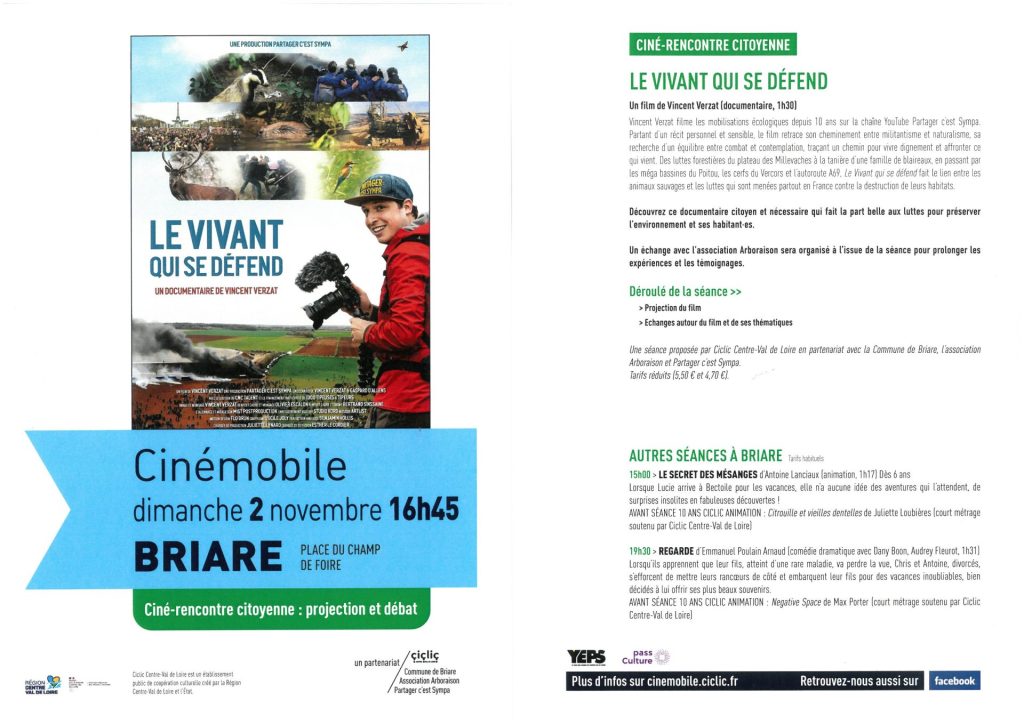 Le cinémobile est de retour le dimanche 2novembre 2025 sur la place du Champ de foire avec une projection rencontre en partenariat avec l’association Arboraison