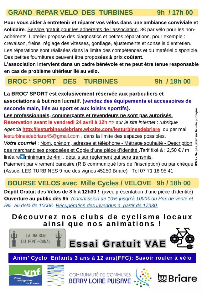 RENSEIGNEMENTS lesturbinesdebriare45@gmail.com 07 71 18 95 41