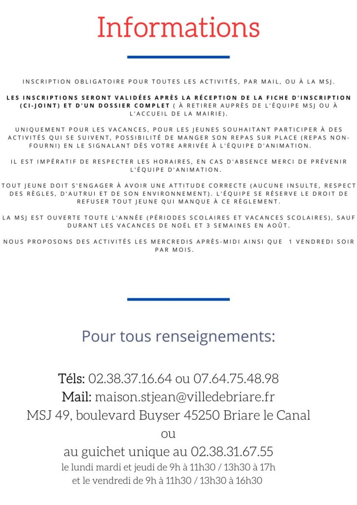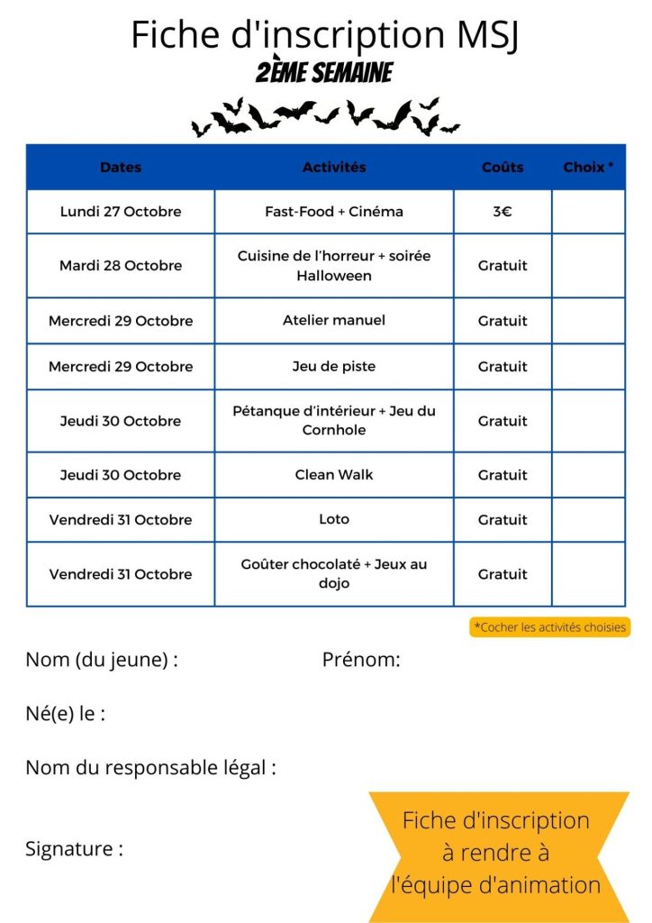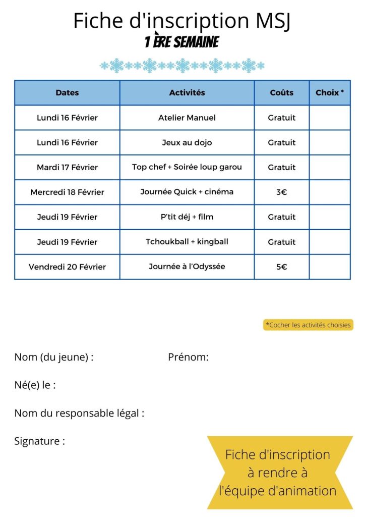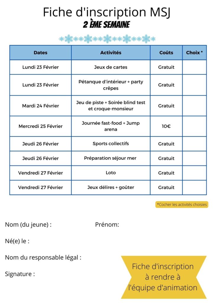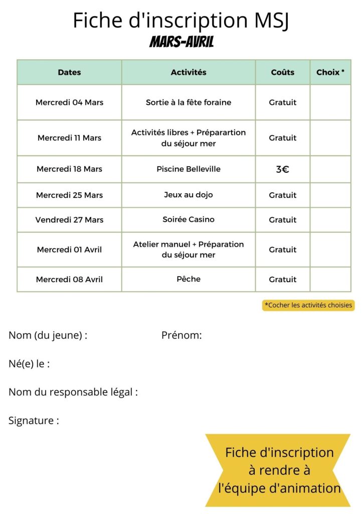 Inscription obligatoire pour toutes les activités par mail ou à la MSJ.
