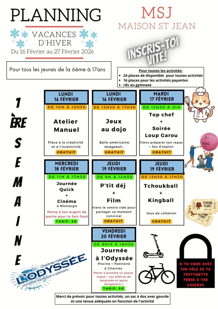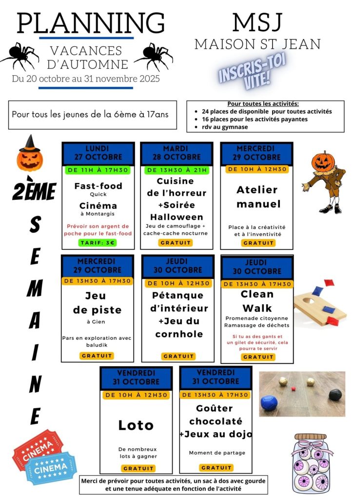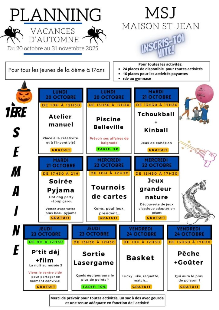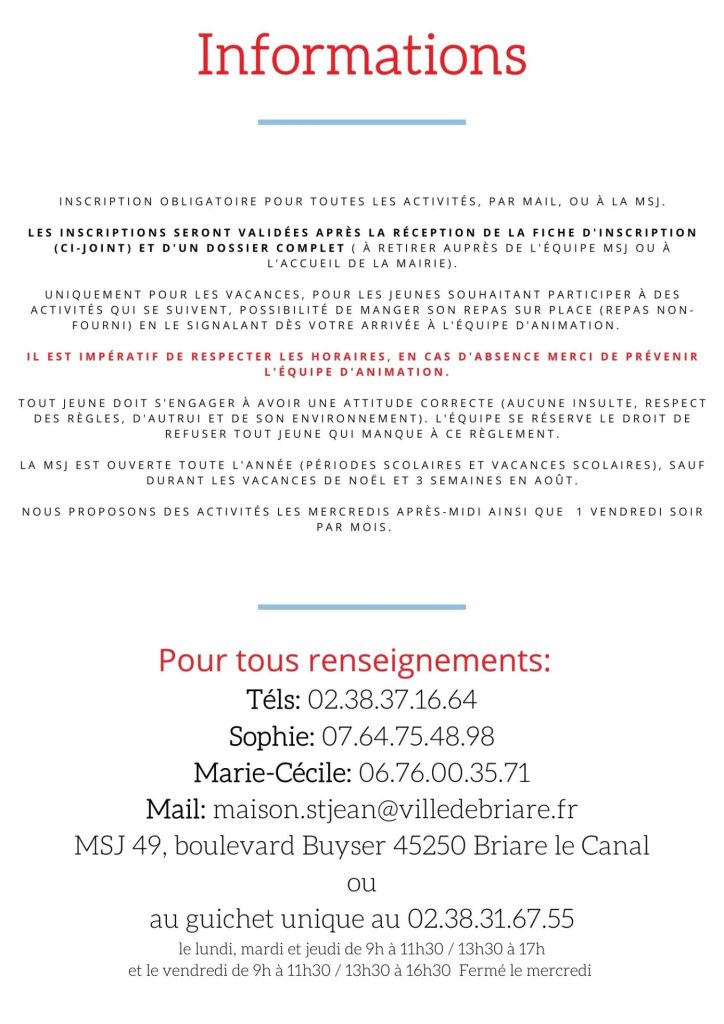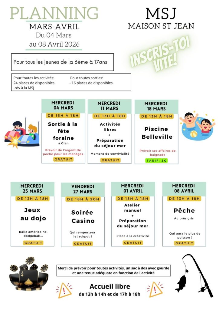 Inscription obligatoire pour toutes les activités par mail ou à la MSJ.